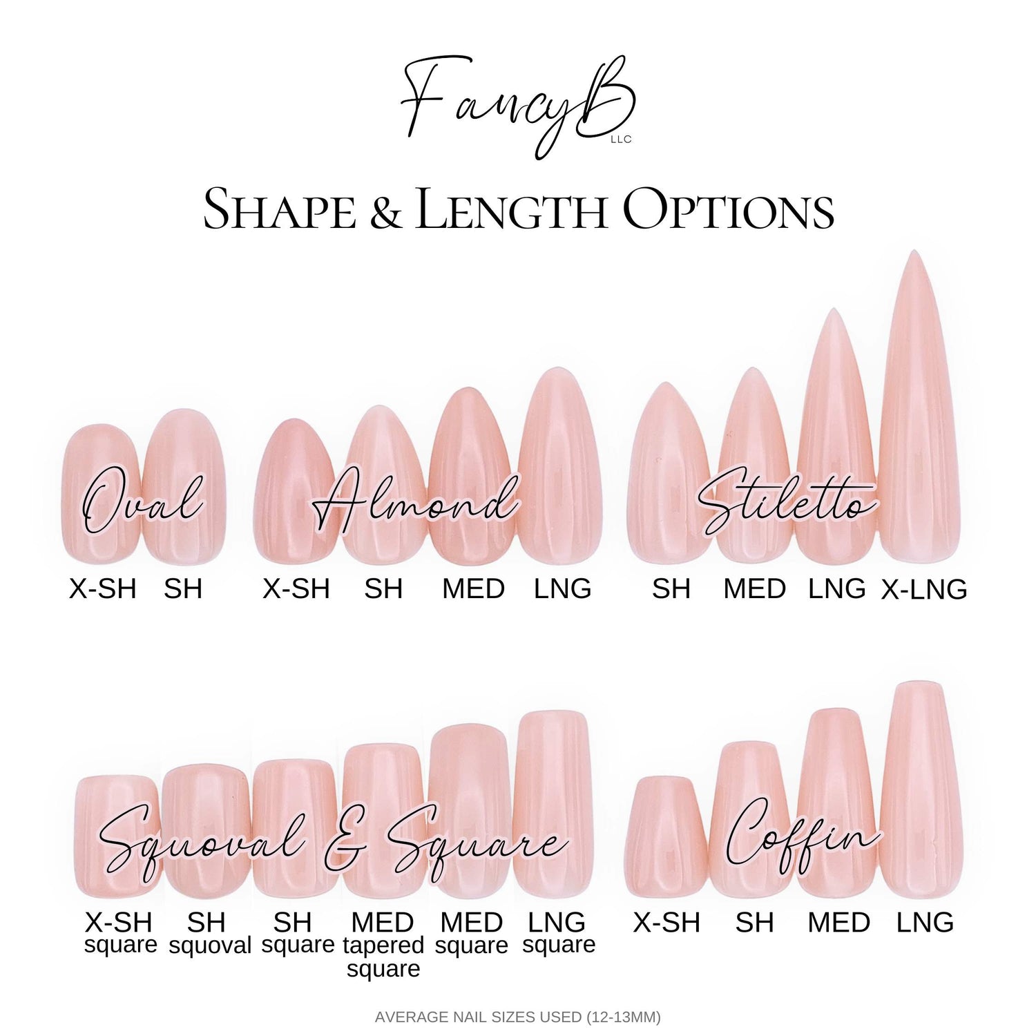 We offer a wide variety of nail shape and length options for our nail sets.